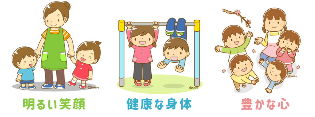 御幣島幼稚園の三大理念である「明るい笑顔」 ・「健康な体」 ・「豊かな心」 を育む幼児教育を行っています。